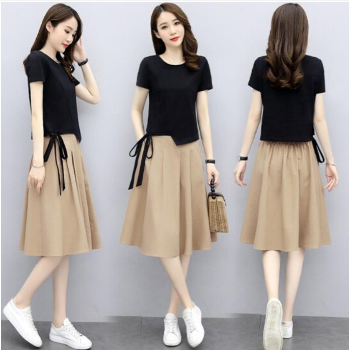 • 商品名称:妍莉芬 棉麻连衣裙新品女装套装2022年夏装新款韩版显瘦洋气休闲两件套套装裙中长款夏天裙子 黑+卡其 L